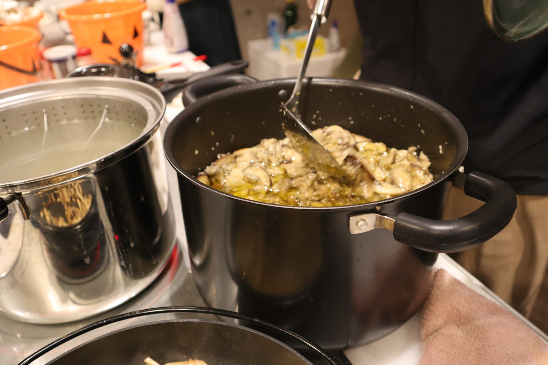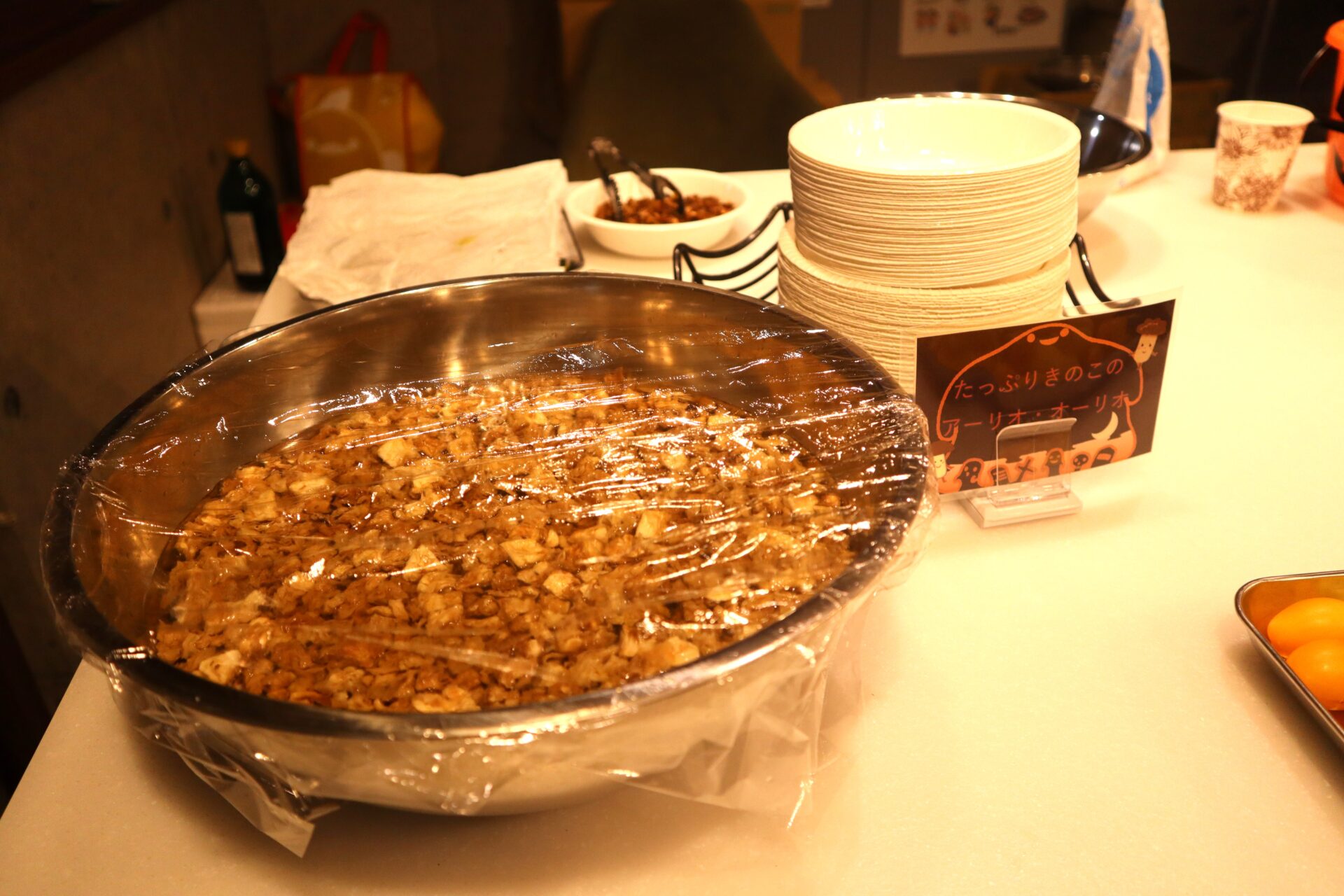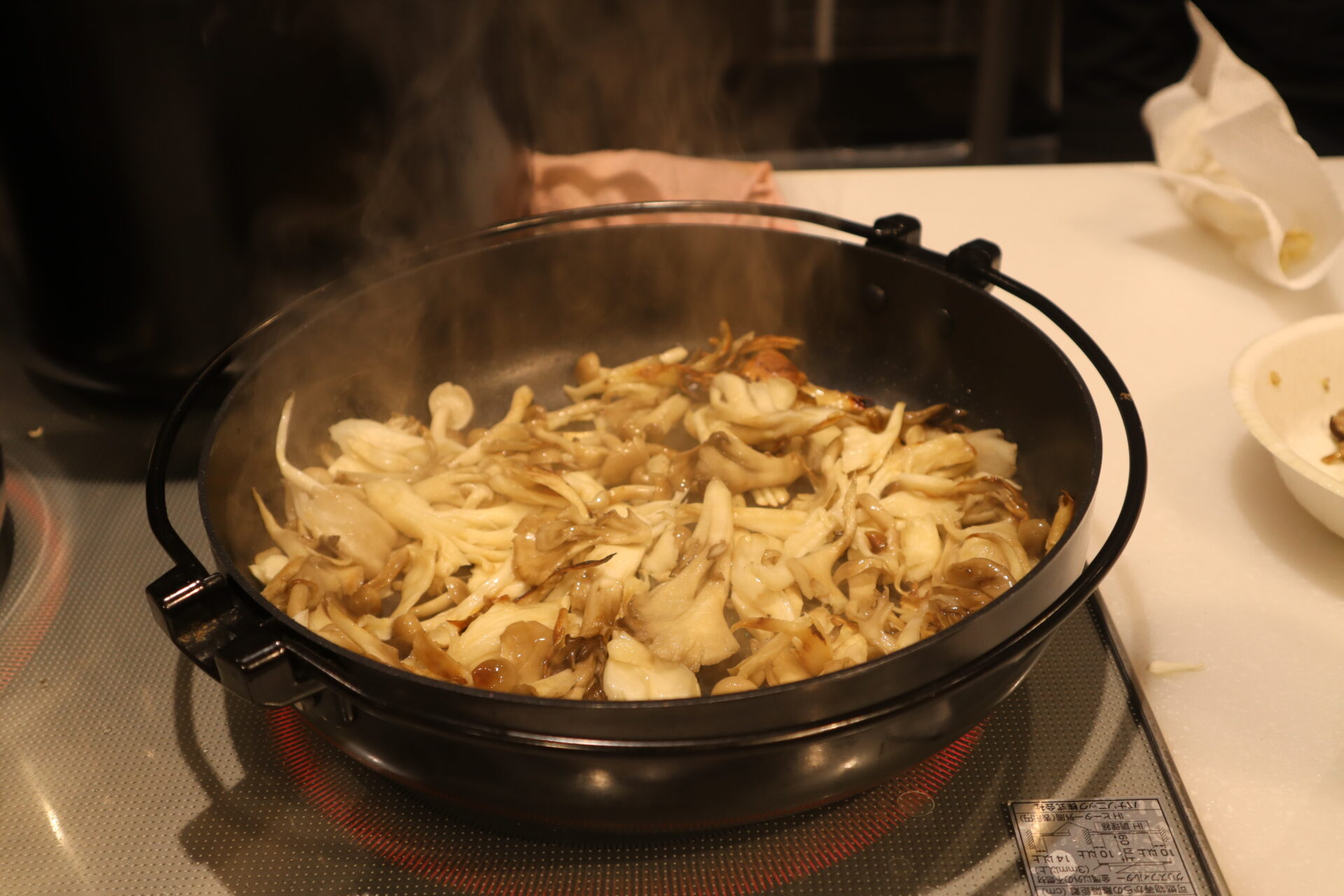 アーリオ・オーリオは、あえてベーコンなど味の濃い食材を使わずにきのこだけで勝負したことで、きのこの旨味を満喫できる美味しさでした。色々なきのこが使われていることで香りがより豊かになり、食感の違いを楽しむこともできました。